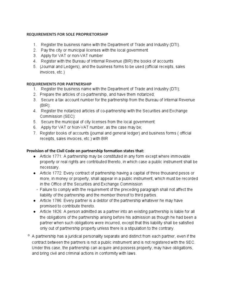Requirements of Sole Proprietorship PDF Partnership Corporations
